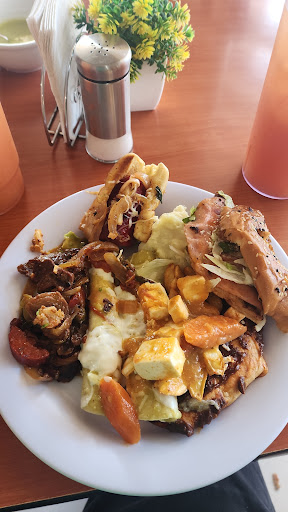 Read moreLa comida casera un 8/10 no hay comida extravagantes obviamente pero para el precio es muy aceptable, los meseros amables todos, atentos a recoger platos o a llevarte tu jugo o que pidas, las comidas como repito muy caseras pero bastante aceptables, una recomendación seria que sean un poco mas cuidadosos con el tema de los postres y frutas por que siempre ae ve desordenada esa area y que tengan mas precausion al entrar moscas es dificil por que la gente entra y sale pero son detalles aye hay que pulir para mejor experiencia al cliente, detalle el baño que solo uno tienen y aveces esta llenisimos, ojalá abrieran otra sucursal ya sea por la av telefonos o en alguna zona que no esté tan retirado de esta por que demanda de clientes tienen...