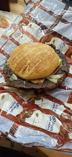 Read moreSon hamburguesas con la carne tan grande que sobresale del pan. A mayo del 2018 estaban a $50, lo cual esta bien pues si esta generosa la carne, ES SOLO PARA LLEVAR, y son algo raquíticos de ingredientes, me dieron 2 sobres de catsup para semejante hamburguesa, y le hace falta tomate. Fuera de eso el sabor...