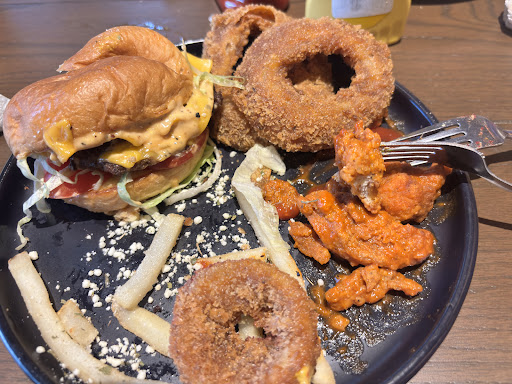 Yo pedí una hamburguesa de Diezmillo (bastante seca) con tocino y mi pareja una orden de Mac & cheese acompañado de boneless estilo búfalo y papas a la francesa.