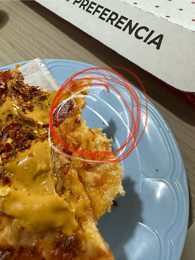 Read morePésimo servicio, te dicen que se tardan 20 minutos en tu pedido pero tardamos más de 1 hora y 20 minutos, tienen muchos pedidos de Uber los cuales les dan prioridad por lo que la gente que está en físico en la tienda tienen que aguantar hasta una hora y media en un local que no tieneni siquiera un baño, pésima higiene (huele a pies las mesas) y los botes de basura estaban a reventar. Las pizzas son, como el resto de las sucursales, muy ricas, pero en esta sucursal la atención deja mucho que desear, además de que cualquier pregunta de 'ya está mi pedido' desencadena que te lanzen al final de la cola en forma de venganza por parte del la gente...