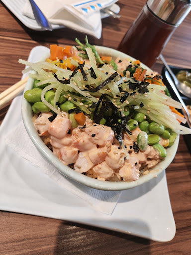 Read moreLa verdad me gustó, fue la primera vez que iba y nos atendieron super bien, el lugar no estaba lleno y pudimos sentarnos en una mesa que nos gustara, algo de lo que me percate era que las luces eran algo oscuras no está mal que estuviera así ya que le da un toque a la atmósfera del lugar y la música que ponían era lo que más me gustó pues era moderna (Harry Styles, Dua lipa, The Weekend), en el servicio el señor que fue amable algo brusco en su manera de hablar pero creo que solo era así no estaba siendo malo ni nada, la comida se tardó mucho en llegar pero estaba bien, lo que más me gustó fue el porque con arroz frito de base estaba riquísimo, el sushi estaba meh 😕 pero sabía bien y la bebida era un Gin de frutos rojos pero parecía soda de fresa jsjs estaba rico. Si recomendaría el lugar para ir a...