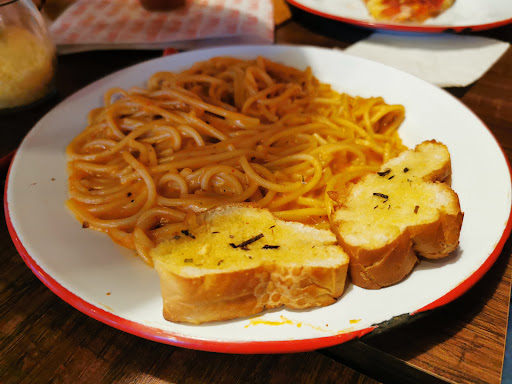 Read moreAcudimos hoy al restaurant, la atención no es buena, trajeron x partes lo que pedímos, pedimos pasta, calzones y 2 bebidas para empezar e ir probando, trajeron 1 bebida, 15 mins desp 1 calzone, tuvimos que pedir la otra bebida porque no la traian, pasaron 20 mins y trajeron la pasta, pasaron 10 mins pregunte x lo que faltaba y no se si se le olvido a la mesera o al cocinero pero hasta 15 mins más tarde Yaque casi pedíamos la cuenta trajeron el otro calzone. La pasta pedimos con camarones que no los vimos, el calzone de carne con queso que tardaron tanto sabía mal, la carne tenía un sabor raro como a guiso muy viejo no lo terminamos solo lo probamos , los 2 meseros estuvieron platicando y riendo atrás d la barra no escuchaban ni al cocinero cuando les hablaba , lo único rápido fue la cuenta. En estos casos te preguntas si los meseros merecen propina y si volverías, la respuesta...