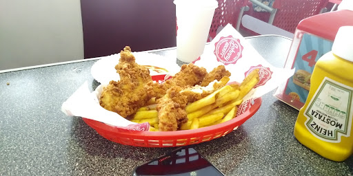 Read moreFui hace un par de años, tenía poco de haber sido inaugurado. Chocante escuchar a los empleados saludar y despedirse de todo mundo (ojalá ya lo hayan dejado de hacer). La hamburguesa que pedí ESPANTOSA, grasosa y sin chiste, me cayó bien pesada. Las papas a la francesa igual, aguadas y super aceitosas, el "detalle" de poner un cara sonriente en el plato con el ketchup pues mono pero bastante soso. Al final la cuenta, una burla para la calidad y presentación de los alimentos. No me quedaron las ganas de volver nunca más. Si lo que venden es la imagen del restaurant, pues sí, parece un diner americano de hace varias décadas, los alimentos dejan...