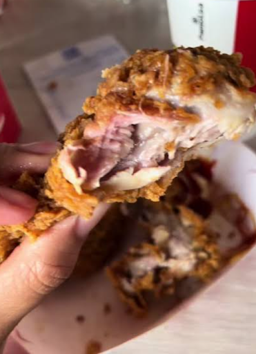 Read moreHola buenas tardes les vengo a redactar mi experiencia en el KFC, ayer como a las 3:45 de la tarde fui al establecimiento en el cual al llegar al establecimiento se veía como sucio, después decidí ordenar junto a mi hermanita de 6 años, mi hermanita estaba comiendo muy entusiasmada mente porque es su pollito favorito, en lo cual después me dice hay que hacer un vídeo comiendo todo de color rosa, la volteo a ver y le pregunto que porque decía eso? Y ella me respondió: porque mi pollito también es rosa, agarro su pollito y lo veo y esta rosa como si no lo hubieran cocinado. Le comenté a la señorita y a la cajera de lo sucedido no me reembolsaron mi dinero y me corrieron del establecimiento, fue muy triste para mí pequeña hermanita yo tengo 25 años y no me parece justo por lo cual al momento de ver el pollo rosado le tome foto para que no digan que no es cierto o que lo estoy inventando. Aquí la foto y espero su respuesta "KFC" no volveré con mi hermanita y con...