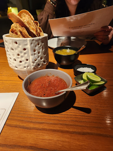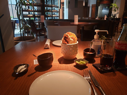 Excelente restaurante con muy buen servicio. El mesero estuvo al tanto en todo momento y nunca tuve que buscarlo para pedirle algo. Este restaurante se encuentra donde antes estaba Pangea. El lugar está muy bonito y elegante y las luces le dan un aire de privacidad, ya que tiene principalmente luz amarilla en un tono suave. Es ideal para ir en una cita en pareja. También tiene una terraza con vidrio en los alrededores, así que entra luz natural.
