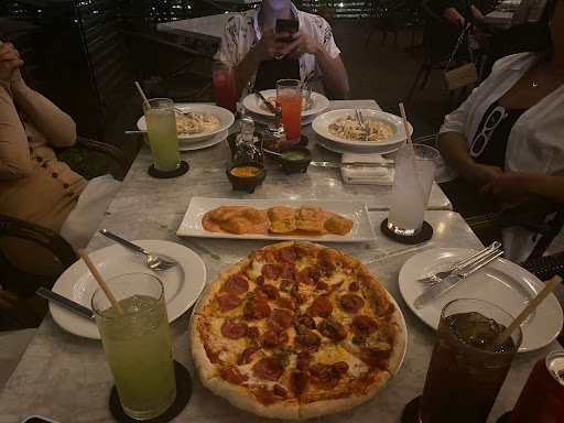 Respecto a los platillos, les doy un 7. El sabor de la pasta no fue nada espectacular, y la pizza me pareció muy normal; es una pizza que fácilmente podrías encontrar en cualquier pizzería rápida.
