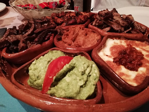 ➡️ la proteína ➡️ queso flameado ➡️ guacamole ➡️ frijoles refritos picositos ➡️ tortillas recién hechas