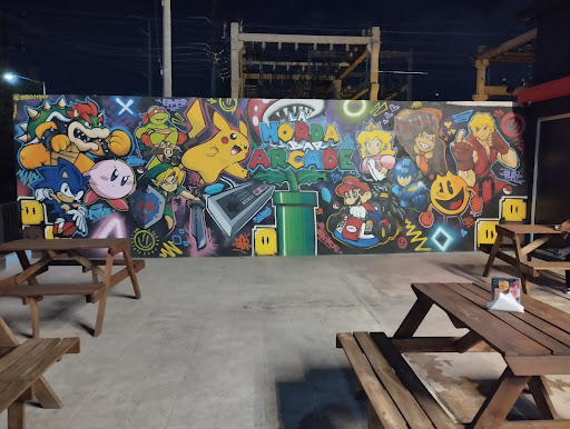 Arcades: Encontraras videojuegos variados (pacman, metal slug, xbox, wii u, switch, mario kart, fx zero, disparos, musicales, entre otros). La mayoria funcionan bien y los puedes jugar en cooperativo o vs. A pesar de ello, le falta variedad y cuando se llena el bar, hay que esperar un poco de tiempo.
