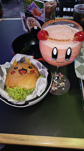 Comida: Probe la hamburguesa de Pikachu, de la cual, la presentacion es lo unico bueno. La salsa fue demasiado acida y es lo que mas resalta, del pollo apenas se sintio su sanor, el pan todo mojado, tenia lechuga bañana en salsa que ni se antojo comer. Venia acompañada de papas fritas que estaban todas aguadas sin presentacion ni sabor. Compramos un platillo que trae alitas, boneless, palitos de queso, un poco de salsa, papas fritas y papas en gajo. Las alitas estuvieron bien aunque a la salsa BBQ le falto sabor; los boneless fueron muy malos, era mas harina que pollo, y a la salsa mango-habanero le falto sabor a mango aunque si picaba bastantito; las papas fritas estuvieron bien; las papas en ajo estuvieron muy bien; los palitos de queso estuvieron muy ricos; la salsa extra que traia tambien tenia buen sabor