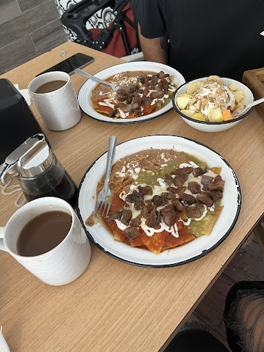 Recomendacion: El lugar indica que abren a las 7am, pero no lleguen a esa hora, lleguen despues de las 7:30am para que los puedan atender bien. El sabor de la comida es regular, nada que no puedas encontrar en otros lugares, lo que lo hace llamativo son las presentaciones de los platillos (hot cakes, malteadas), nosotros probamos los hot cakes de nutella con platano y en si, el puro hot cake solo, tiene un sabor muy ralito, lo que le da el sabor es el topping que le añaden. Los chilaquiles estan bien, el café de olla (que es refill) estaba rico, el problema es que me lo sirvieron tibio tirandole a frío :'( igualmente los molletes casi fríos. Precios accesibles en los platillos de entre $80 y $120 mxn. (03/12/22). En la parte de instalaciones estan bien, agradables. Si me preguntan si regresaría, tendría en cuenta otras...