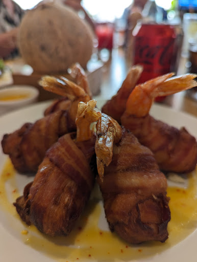 We ordered the shrimp with bacon. The shrimp was cooked well, too much bacon. The mango and butter sauce was the star of this dish, it could have come with just bread and I would have ordered that. This dish was way over priced for 5 pieces of shrimp.