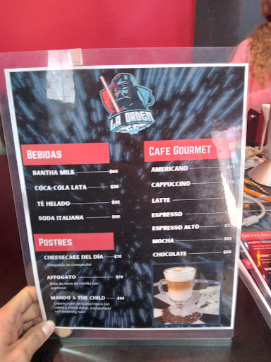 Read morePrimero es justificar la calificacion, no es mala pero no puedo ponerle un 4 al menos, en verdad el lugar esta super padre, entras y quieres sentarte y tomar un cafe, y disfrutar el solo hecho de estar ahi dentro, porque saber que la dueña que tambien esta ahi tambien tiene esa conexion al igual que uno con Star Wars. Acudi en hora de comida por primera vez (trabajo a 3 minutos de distancia) por al menos un cafe para llevar, pero no tienen esa opcion; pregunte si podia para la proxima llevar mi termo y me dijeron que no habria problema (buena esa, la salvaron). Compre unos chocolates geniales con formas de figuras alusivas a Star Wars, el precio genial a mi gusto, $75°° una cajita mediana y la grande $150°°. Pago con efectivo y sin cambio :(, nuevamente salvaron la situacion aceptando pago con tarjeta. Sin duda un lugar al que quiero acudir sin la prisa de estar en horario laboral, pero entre 11am y 4pm, todos aquellos que disfrutemos de solo entrar y ver las figuraas coleccionables y el fabuloso pino navideño nos limitan a menu pequeño. Bebidas y postres para llevar seria genial que lo agregaran. Volvere a valorar la cafeteria despues de mi...