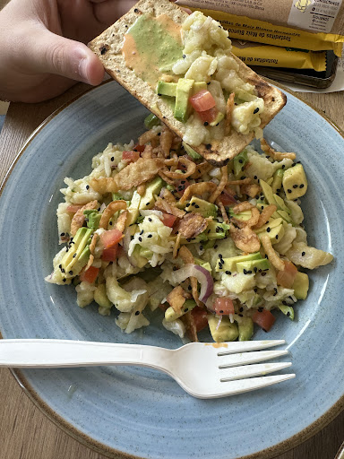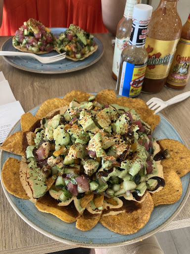 Es un lugar iluminado, sencillo, me gustó el letrero que dice I sea you.. limpio con taburetes y sillas para aproximadamente 25 comensales, su menú es sencillo pero con sabor fresco y bien preparado. La tostada de diferentes ceviches es su especialidad, pedí tostada de ceviche de camarón, la peruana y la de coliflor..las preparaciones con buen sazón.. la tostada aguanta los jugos de la preparación, te ponen unas salsas de botella para que le agregues y 2 aderezos de la casa el de cilantro y el de chipotle..de textura algo ligera pero ricos. El lugar estaba celebrando su primer año en servicio ( antes estaban en otro local.. ahora en planta alta)por lo que te obsequiaban un quequito pastelero.. En resumen me gustaron los ceviches, y también compré para llevar. Tienen varias áreas de oportunidad... Aunque el lugar tiene wifi y enchufes para trabajar ahí , el clima está tan alto que te invita a irte rápido . Cuando algún comensal ( me incluyo) pide tostadas extra te las dan a cuenta gotas ,se nota que las tienen contadas. Pueden mejorar en el empaquetado para llevar pues te lo dan en bolsas plásticas bastante feas y sin el logo del negocio . Me llamo la atención que venden unas galletas con chispas de chocolate y otras sencillas hechas con harina de almendras las cuales probaré en otra ocasión..y que en el mostrador tienen unas pequeñas mentas de obsequio al cliente, si eres observador aprovechas y tomas una..se agradece después de comer . En general son amables pero hay detalles para mejorar, tienen potencial.. si lo recomiendo y...