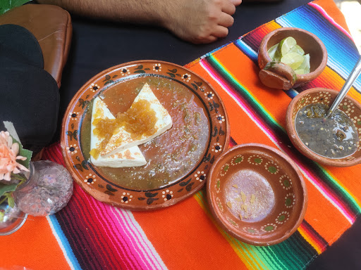 Llegamos e inmediatamente nos dieron el menú (quién asumo era el capitán de meseros o algo así), ya sabíamos que queríamos de tomar y se lo pedimos, a lo cual nos dijo "claro"... Total al final pasan dos meseros a nuestra mesa a dejar totopos, pero aparentemente no se habían puesto de acuerdo de quién iba a llevarlos porque así como nos dejó uno en la mesa atrás de ese iba otrx meserx quien se quedó enojadx a lado de la mesa haciendo ruidos de molestía (entiendo la molestía pero es incómodo para el comensal que se quede a lado de la mesa), total nos toman la orden y nos pregunta qué que vamos a tomar, a lo que amablemente dijimos que ya habíamos pedido eso, para lo que resulta que nunca lo metió a la orden el capitán (?) en fin, decidimos pedir ya, la comida no tardó nada, el quesito de la foto DELICIOSO, pero llegó el queso y los platillos de fotos Y NO LLEGABAN LAS BEBIDAS QUE HABIAMOS PEDIDO DESDE QUE LLEGAMOS, sumado a esto nunca pasaron a preguntar si necesitabamos algo o así, cero nos dieron servilletas.