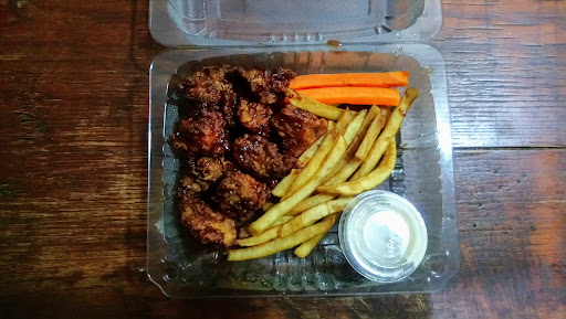 Ordenamos unos McFries, básicamente son pasta con marinara, pollo y papas. El único sabor que resaltaba era la marinara. Supuestamente tendrían queso, pero de eso, nace un verso, sin esfuerzo, no hubo nada. Las alitas estaban más secas que el corazón de tu ex. Y la salsa Psicosis (la que más pica...) no pica. En serio, nada. Mi acompañante pidió una ensalada para sentirse que come sano, esa estaba buena. Además de eso, ordenamos una hamburguesa con piña, que fácilmente cabe en la mano de cualquier persona. Ventaja, si eres de manos chicas, la vas a ver grande jj