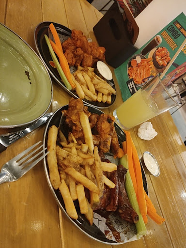 Volvi a ir con mi familia pues La plaza está muy bonita y pensé que comieramos en el área fuera del restaurante nos atendió una mesera antes de que le comentara algo me dijo que ya no tenían menús en físico pensé que estaría enojada por el tono de voz le dije mira acabamos de venir la semana pasada y ya sabemos que pedir quiero los platillos que incluyen costillas,alitas y elote apenas termine se decir eso y me contesto NO HAY ELOTES. Ok ntp tráeme lo demás me contesto voy a checar A VER SI HAY ALITAS. ?????? Le pregunte es restaurante de alitas y no vas a tener eso ? Me molesto más la actitud de la chica trate de llevar tranquilo la situación le dije a la familia que entraramos al restaurante y nos atendiera otra persona estaba un hombre de traje en la puerta y le comenté que como era posible que no supiera la chica lo más básico y me comento es que es nueva. Entramos al restaurante y estaba un mesero tomando pedido en otra mesa y lo esperamos para que nos tomara la orden .en eso llega la chica de que nos según nos atendió al principio y no le entendí lo que decía yo le comenté que esperaría mejor al muchacho a que nos tomara la orden . En fin se fue la chica y en un rato más llego el chico y nos tomó la orden otra vez le explique queremos los platillos que incluyen costillas,alitas y elote me comento rápido no tengo elote pero le pongo papas fritas y pensé si esta bien pedí unas micheladas y una limonada . Después de un rato nos trajeron las bebidas y se que la comida se tarda pero mi limonada estaba un poco insípida y le pedí al mesero si por favor le decía ala chica de la barra si podía ponerle un poco de endulzante si se la llevo pero ya no me la trajo la comida se tardo más de 50 minutos por que vi que le dan preferencia a los pedidos para llevar cuando al fin nos llevaron los platos NO ERA LO QUE HABIAMOS PEDIDO EN SI NI ERA ALGO PARECIDO le dije al mesero amigo eso no es lo que te pedí. Titubeo y vi que se puso nervioso y vi cuando le dijo algo al cocinero y nos echo una mirada de pocos amigos después de otro tiempo largo nos llevaron lo que si pedimos y le dije al mesero que no me había llevado otra vez la limonada me dijo que la traería pero después de tanto tiempo le dije mejor tráeme una coca cola la llevo y empezamos a comer pero ya nos nos ofreció más para tomar yo me levante a rellenar mi vaso de coca mi familia tuvo que terminar de comer sin bebida malisimo. Vi otra vez al hombre de traje y pedí hablar con el pensé que seria el gerente. Le comenté toda la situación y me contestó lo mismo que la gente es nueva que no esta capacitada bien por que hay mucha rotación de personal y que el mesero no fue a ofrecernos nadamas por que se puso nervioso pero que no pensara que era para que nos fuéramos. Le comenté que habíamos ido una semana antes y nos habían atendido excelente como era posible que perdieran clientes así porque ya no pensamos ir de nuevo a pasarla mal. No recomiendo ni volvería a ir a pasarla mal .capaciten bien al personal están...