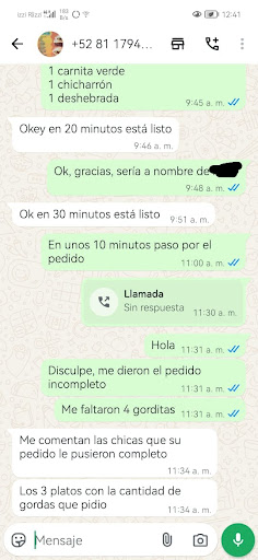 ACTUALIZACIÓN Los faltantes fueron 4, nos entregaron 8, tanto así que solo nos habían puesto dos bolsas de salsa. Aparte de prepotente eres mentiroso, en ningún momento mi esposa se bajó de mala manera, incluso en la foto que pongo poco antes de llegar al establecimiento mi esposa les comentó de buena manera la situación y tú estabas aferrado a que iba completo, si así tratas a tus clientes como has de tratar a tus trabajadoras, no me extraña que no aceptaran que se equivocaron. Nunca se disculparon, simplemente las señoras se metieron y le dijeron a mi esposa que iba completo, obviamente solo pedimos lo que nos faltaba todo de buena forma, momentos después fue que saliste muy altanero contra mi esposa y fue cuando me baje del carro molesto por tu actitud diciéndole a mi esposa lo que ya mencioné antes. No se que defiendes si no soy el único que te ha reseñado mal por tu pésima forma de atender y aún así continuas con tu nula capacidad de atender a los clientes, lástima que prefieras alegar a reconocer los errores de tu establecimiento. Y a la señora que según tú le estábamos "alegando" solo le decíamos sobre tu pésima forma de atender, y tan fácil que era corregir el error del pedido pero preferiste salir muy altanero a discutir, tanto que ella reconoció que el señor que ahí trabaja seguramente había movido por error el pedido. Pero bueno, se ve que te gusta perder clientes antes de hacer las cosas bien, repito, NO...