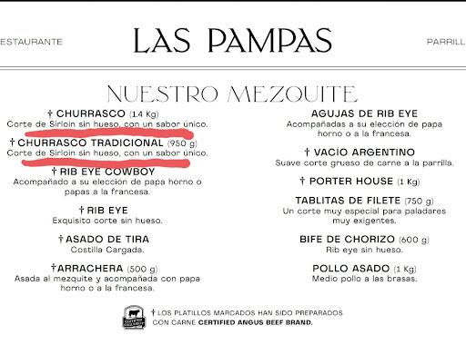 Cayeron totalmente de mi gracia, al servirme un churrasco supuestamente de 1 kg pero era más hueso que carne, siendo que nunca en la vida habían servido churrasco con hueso, no se que les paso pero estaba de lo peor, la poca carne que tenia estaba dura y a pesar de que lo pedi termino 3/4 parecía que estaba comiendo chicle sabor carne, de hecho todos los churrasco que nos sirvieron tenían hueso, y en la carta dice que es un corte de Sirloin sin hueso, yo no acostumbro a tomarle foto a mis alimentos, pero ahora me arrepiento de no hacerlo, también me arrepiento de no haber dicho nada en el momento pero no quise hacer pasar un mal rato a mi familia y sobretodo a mi madre y mi esposa ya que fuimos a festejar el Día de las madres a este restaurante, dejaré otra del churrasco de mi esposa, solo que el de ella tiene un hueso más decente, pero al final de cuentas no se está respetando lo que dice la carta, si tenían algún cambio de producto es su deber informar al cliente, este comentario es para informar a futuros comensales, no tengo nada en contra del restaurante en cuestión, solo que siempre nos habían deleitado con cierta calidad en los alimentos y en esta ocasión no fue así y pues es decepcionante, lo siento, lo tenía que expresar, mi pecho...