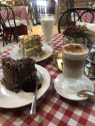 Read moreMe gustó la presentación del capuchino y del vaso de leche. El capuchino está rico y espumoso y te le ponen canela en polvo arriba, el vaso de leche está fresco y sabe muy buena es una copa grande y el capuchino está de buen tamaño también. El pastel de ferrero no sabe a ferrero fue lo que me decepcionó un poco, es de chocolate más que nada y está muy dulce pero no me supo a ferrero, esperaba que de presentación tuviera el chocolate ferrero entero de decoración pero no hubo ni uno, por su precio pensé que si vendría, la rebanada costó como $180, si es buen tamaño pero muy dulce. El de pistache estuvo un poco mejor, está más natural y menos empalagoso que el de chocolate y si trae pistaches enteros en la mezcla, me agrada que te le ponen como una leche o crema de pistache con la que bañan la rebanada un poco. El servicio son atentos aunque sólo había una señora atendiendo todas las mesas y andaba corriendo para todos lados, faltó más ayuda ahí. El ambiente pues es muy neutro, me gusta que es más bien silencioso. Los dueños párese ser que son los que están en el mostrador cobrando, se notan muy atentos y al pendiente. También rentan salón para eventos.