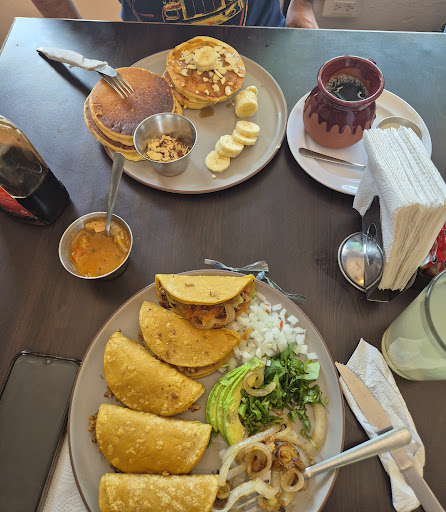 El mejor lugar para desayunar que he conocido y eso que he probado muchos lugares para encontrar el ideal y este lo es🥞✨ Superó totalmente mis expectativas en todos los sentidos. Los chilaquiles están deliciosos! La salsa esta perfecta, no esta ácida y la porción es ideal. El café esta muy rico, nada que ver como en otros lugares que esta muy diluido o no tiene buen sabor, ya te incluye la leche y no te la cobran aparte, les recomiendo el refil, los hot cakes están muy ricos, no están secos, están muy esponjositos y tienen muy buen sabor, el topping que te dan esta Perfecto para la cantidad de hot cakes que te dan, incluso de 1 platillo pueden compartir dos personas como tipo postre, ellos te dan otro platito si saben que vas a compartir no como en otros lugares que te miran feo o como si fuera un favor. Algo que me gustó mucho fue la atención tan amable que tienen, que te hacen sentir todo el tiempo comodo. Me parece un lugar muy familiar para desayunar tranquilos y platicar. He visitado lugares comerciales o grandes como el vips o restaurantes/ cafeterías de ese estilo y nada que ver con este lugar que en todos los aspectos tiene CALIDAD ojalá este lugar fuera más reconocido pues vale totalmente lo que pagas. Cada peso que gastas lo vale. Por dos personas fueron como 450 y fueron dos cafés refil, hot cakes y dos chilaquiles. Quedé encantada con el lugar y sin dudarlo voy a regresar, se convertirá en mi favorito y obvio lo recomendaré. Felicidades a los dueños...