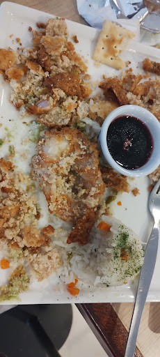 La verdad,yo soy cliente asiduo de la sucursal de Villagrán,digo asiduo ,porque voy dos o tres veces por mes ,está vez ,andábamos por el área de Universidad y se nos hizo fácil llegar,estaba concurrido pero no lleno,sábado 8 marzo a las 2 de la tarde,buena o mala señal,no lo sé,mi esposa ,mi nena de 4 años y un servidor,un aguachile estupendo como siempre,un filete de el Rey para mí mujer,unos dedos de filete para mi nena,y mi error,unos camarones al coco para mi,todo bien,atención,servicio ,limpieza,y que me llegan los camarones ,para empezar nunca les encontré el coco,me los empanizaron con una harina que sabía a coco si,pero nada que ver con la receta,no los pude ni meter a mi jugo de Jamaica porque se caía la harina en el vasito,la verdad,les tuve que quitar toda la harina que traían ,que mugrero,por mi parte no vuelvo ni a darle la segunda oportunidad,y mejor sigo llendo a Villagrán que nunca ,nunca hemos tenido problemas con...