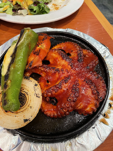 Underwhelming experience for this place with supposedly great seafood. I had octopus which was very chewy. The garlic shrimps were ok but nothing out of this world. Based on all great restaurants in the neighborhood I was expecting more. Price is good though. Atmosphere is sort of a local sport bar (football game was on) which is too bad when the restaurant next door was having live music. Located on the 2nd floor of the mall but on the outside so don’t get fooled by going into the mall. Desserts are nothing amazing and premade waiting for you in the fridge at the entrance of the place