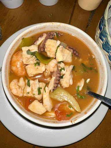 Delicious seafood soup full of🐟🍤🦑 to fulfill cold weather and health demands to keep oneself warm 😋😊 This bowl of seafood soup (Caldo Largo) was a full of delicious flavours from the ocean at Los Arbolitos restaurant in Plaza San Agustin. The tomato-based broth, rich and vibrant, was the perfect backdrop for the array of seafood nestled within. Chunks of tender white fish, succulent shrimp, and slices of octopus tentacles create a diverse and satisfying texture. The freshness of the seafood was enhanced by the subtle tang of the tomato, while the garnish of fresh cilantro adds a hint of earthiness. The inclusion of green bell peppers and tomatoes not only contributes to the visual appeal but also provides an additional layer of flavor and crunch. Each spoonful offers a delightful mix of ingredients, making this soup a comforting and nourishing option particularly for a rainy cold season. Whether enjoyed as a main course or a starter, this seafood soup is sure to leave a lasting impression on any seafood lover's palate. A true delight for the senses! 🐟🍤🦑