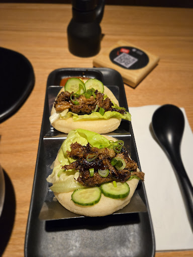 Ordered the Ebi Ramen and Pulled Pork Bao. The ramen is I expected and not bad. Nothing I would wait in line for, but it was fine. The Bao was good. The pulled pork had the right flavor, and the bao dough was fluffy with a brush of sweetness like it should be. I put some chili sauce on the bao for more zing. They only serve Pepsi products, and I was craving for a Diet Coke.