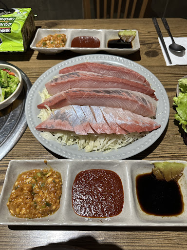 Read moreHe ido un par de ocasiones. La primera ocasión pedimos BBQ y me sorprendió la calidad de la carne y los acompañamientos. En esta segunda ocasión me invitaron a probar el sashimi coreano. Me pareció buenísimo, las salsas con las que te sirven el sashimi hacen muy buen complemento, soya con wasabi, pasta de chile con vinagre de arroz y azúcar y una preparación salada con ajo. El sashimi era de yellowtail y estaba muy fresco. Una vez que nos terminamos el sashimi, nos sirvieron una sopa con algunos restos del yellowtail, cabeza, aletas junto con algunas verduras y se cocina en la mesa. Maridamos con soyu cero. Muy...