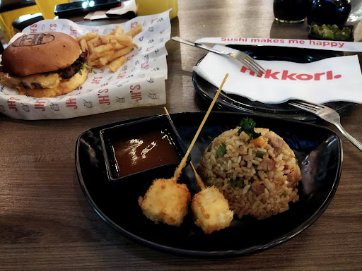 Pésimo y cero recomendable. En general Nikkori me encanta. Era la primera vez que visitaba esta sucursal (soy cliente frecuente de muchas otras en la ciudad y fuera, pero esta vez me tocaba trabajar por la zona). El servicio fue malo (solo había una mesera para todas las mesas, un bartender y 2 personas en cocina), y los tiempos de espera fueron largos. Hacía un calor insoportable (el aire acondicionado que tienen no tiene la capacidad para el espacio), el olor era desagradable (el espacio es compartido con John Ham’s (desmerece un poco el ambiente habitual de Nikkori). La comida FATAL, la terminamos tirando (y no suelo ser nada especial con la comida, ni me gusta tirarla). Daba la impresión de que los cocineros eran inexpertos, tomaban libertades creativas por desconocimiento y no respetaban las recetas de la franquicia. Los rollos casi no tenían ingredientes, los fritos estaban sumamente grasosos, agregaban mayonesa de manera excesiva en casi todos los alimentos que pedimos (y no la llevan originalmente), y sustituyen el Tampico por surimi rayado. Las bebidas también tenían un sabor muy artificial y malo (no como en otras sucursales que suelen ser muy ricas). Al cuestionar por qué lo que pedimos no correspondía con los platillos con los que estoy sumamente familiarizada (casi siempre pido las mismas cosas y en esta ocasión se veían totalmente diferentes), me dijeron que porque en ese Nikkori esa era la preparación correcta. Al probarlos definitivamente no correspondían. El personal no me entendía que al ser una franquicia no hay recetas propias de las sucursales, hay estándares de ingredientes y visuales, y que me parecía extraño que en otras 15 sucursales fuera siempre igual, pero en esta no. Lo poco que si comí, me cayó muy pesado (tampoco suelo tener problemas digestivos y soy bien tragona). Como fan de Nikkori, creo que vale la pena hacer una auditoría de calidad, nunca había tenido una mala experiencia en ninguna otra sucursal en 15 años y 15 sucursales. Está cerca del aeropuerto y la zona industrial como pocos restaurantes y deja una mala impresión de la franquicia para personas que no conocen...
