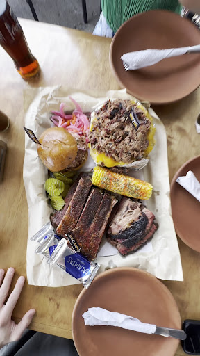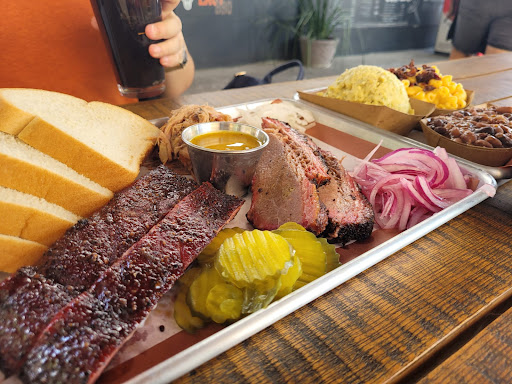 We weren't looking for anything in particular but this place made our meal very special. It was our first time here, so the cashier offered us a platter sampler with brisket, ribs and pork belly, accompanied with pickled onions and white onion, slices of bread (thick, soft and delicious) and 3 sides: Mashed potatoes the most fresh and savory, which was perfect for a 100°F day! Beans, which my boyfriend didn't even bother to save me a 2nd bite since they were so tasty, and mac n cheese with some bacon bits this one wasn't the best, but im very special with my mac n cheese. Now, about the meaty goodness; the ribs were perfectly cooked came super clean-out off the bone, the brisket was a little dry but the pork belly... "get in mah belly"-cious! The bbq was excellent, not too thick nor runny! 10/10 would go back for the friendly service, the peaceful ambiance and the incredible food! Also, they had craft beer, all were great pairings, personally...