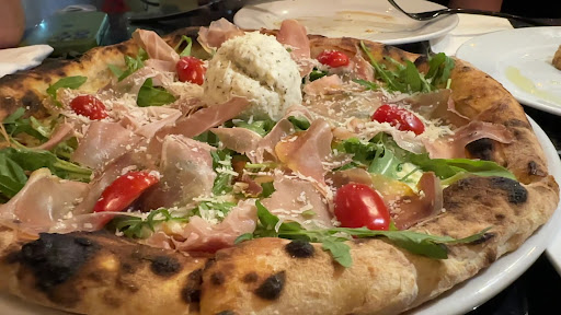 De entrada: La Mergellina, una ensalada con lechugas, arúgula, prosciutto, queso stracciatella, tomatitos cherry y un aderezo de balsámico reducido. Súper fresca y equilibrada. De pasta: el espagueti carbonara, con pasta delgadita, porción justa y sabor auténtico. De pizza: la estrella del lugar, la pizza Oro d’Italia. De masa delgadita y crunchy, tamaño generoso para dos personas. Lleva salsa blanca, arúgula, tomate cherry, prosciutto y stracciatella. De postre: el tiramisú, cremoso, balanceado y con ese sabor clásico que esperas en un buen restaurante italiano.