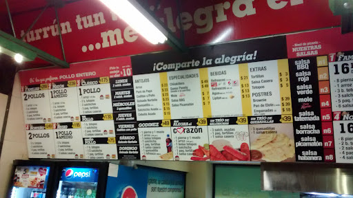 El pollo asado que venden en esta sucursal tiene mejor sabor que el que venden en otras de las sucursales de la cadena como las del centro. Además, por ser un local un poco mas grande en tamaño, cuenta con mayor variedad de opciones de los paquetes y órdenes de pollo que se tienen a la venta. Algunas de ellas se ilustran en las imágenes. Debido a eso, en ocasiones se hace una fila de gente esperando...