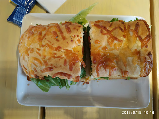 El lugar el pequeño, lo recomendable son los cafés, en lo particular me gusta el moka con chocolate Oaxaca. El café americano también es bueno. La comida son baguette, cuernitos, que son de jamón y queso nada más, no hay variedad, y no tienen sabor alguno. Gracias a que le puse a mi baguette los aderezos de mayonesa, mostaza y catsup, le puede encontrar algo de sabor. Los precios son moderados en la comida, ya que en el aeropuerto todo es caro, y un baguette te puede llegar a costar hasta poco más de 200 pesos. Creo que el baguette de punta del cielo es de los más económicos, no tiene sabor ni relleno, pero no estaba dispuesto a pagar 200 por un baguette, pero quería comer algo. El servicio es rápido, para los sandwiches en general tardan 10 a 15 minutos, y el café es rápido. Si llegas al aeropuerto y tienes antojo de un café, este local es buena opción. Si tienes hambre y quieres comer algo decente, busca otro lugar, ya que no recomiendo la comida, pero no encontrarás muchas...