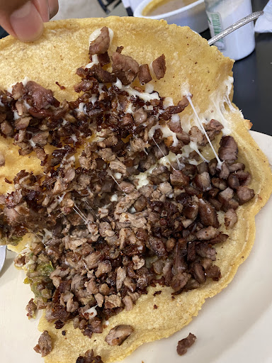 Leí el menú [nunca habia ido] yo solo quería una quesadilla pero a todas les ponían guisos, le pregunto a la cajera cual es mas rica si la de deshebrada o la de carne asada, responde que Carne asada, pedi esa para llevar.