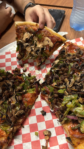 Recordábamos una buena pizza pero al parecer eso fue hace tiempo. La pizza de pepperoni que nos entregaron estaba hecha con queso amarillo (a pesar que los letreros decían que era 100% mozzarella).- Tengo que confesar que nos reímos cuando mi hijo menor hizo la observación de que la pizza sabía a Chettos. La masa era muy, muy gruesa y sin sabor, probablemente tenía salsa de tomate, pero no la vimos, o toda esa masa la absorbió. Los baños no tenían agua, lo cual me hace dudar si los cocineros se lavan las manos antes de hacer mi pizza. Al final, pedimos la pizza para llevar y nos empalmaron las tres rebanadas y el queso se pegó con las otras rebanadas.