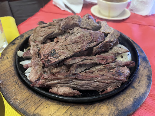 La verdad tenía altas expectativas por algunos comentarios aquí en las reseñas. La comida en si no es la gran cosa, super REGULAR una cebolla asada que me dieron estaba pasada(agria), cuando le comenté esto al mesero parecía haberlo notado antes de dármela y se me hizo extraño como igual me la dieron así, como esperando a que no me diera cuenta o que se yo, me la cambiaron y todo bien. Ya ni siquiera tomé foto del platillo. El precio un poco caro para lo que es. Lo que hizo muy desagradable la experiencia fue que estaba muy deprimente el lugar, vacío(igual no pasa nada) y para terminar, una selección de música que no te alegraba, sonando en una bocina que la distorsionaba y parecía sacada de película de terror. No...