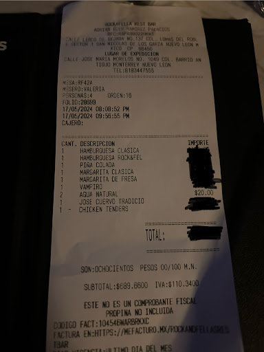 Read moreFui con mis amigos a cenar, lo primero negativo fue que iba a pedir una pizza y me dice la mesera: Pizza ya no manejamos, solo alitas, hamburguesas, boneless… cuando en su menú de Qr vienen las pizzas y también en las destacadas de su Ig🙃 Solo había una mesera y el restaurante estaba lleno, se tardaban horas para ir a nuestro lugar tanto para llevarnos nuestras órdenes, llevarnos nuestra cuenta y luego para llevar la terminal. Y todo esto para que también nos cobraran dos botellas de agua que ni siquiera pedimos, pero ya no quisimos reclamar por lo mismo que se tardaban demasiado, solo fueron $20. En fin, espero puedan contratar más personal y actualicen su menú porque quedamos con mal sabor de boca. Todo lo demás muy bien, la comida estaba bien, solo que los boneless no traen papas, solo apio y zanahoria y la música también estaba bien (muy alta para mi gusto😅 pero es rock...