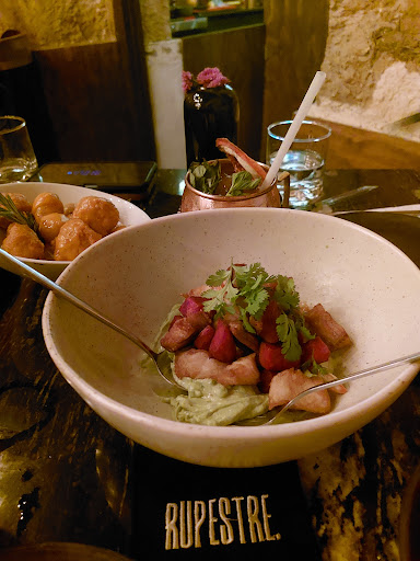 Read moreFui un viernes como a las 6 de la tarde para conocer el lugar, a esa hora está todavía tranquilo en cuanto a la gente, pedí sentarme adentro. Me gustó mucho la atención y servicio, también influyó que no había tanta gente a esa hora, pero mi experiencia fue placentera, me gustó el platillo que pedí, sabía muy rico. Lo que sí comparto con otras opiniones es que las mesas están muy pegadas, y pedí una coca cola, te dan la coca cola más pequeña la de 235ml, ni si quiera llenas el vaso y te la terminas super rápido, para un lugar de ese estilo se me hizo de mal gusto tener que pedir otra coca cola porque ni si quiera me rindió para terminar mi comida. El lugar muy bonito y acogedor, tiene buen diseño interior. Las mesas y sillas de adentro son altas, las de afuera de la entrada son de tamaño "normal". Me quedé con ganas de probar otros platillos, espero ir pronto...