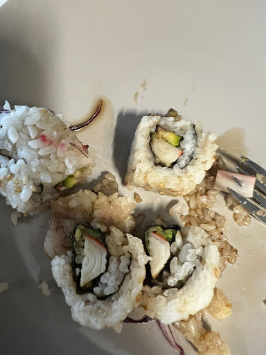 Read moreLES RECOMIENDO NO COMPRAR EN ESTE LOCAL NI IR. Asco de servicio y comida. Literal el wey que atiende ni hace nada y finge que está haciendo algo por puñetas para no atender .... Luego la orden mal preparada y para colmo que se tardan como media hora... Parecen un mal chiste los empleados del local. Adjunto imagen para que vean que ni preparan bien la comida (Un rollo californiano que ni agregaron la filadelfia que debe de llevar, solo surimi y aguacate para lo caro que cobran estos imbéciles) y super desabrido sabor (ni agregandole soya ayudó). También había pedido un arroz frito con pollo y CASI NADA DE POLLO AGREGARON y el arroz sabía a que no estaba bien cocido. Por esto y más, les recomiendo no ir, hasta se antoja más el local de a lado que son...
