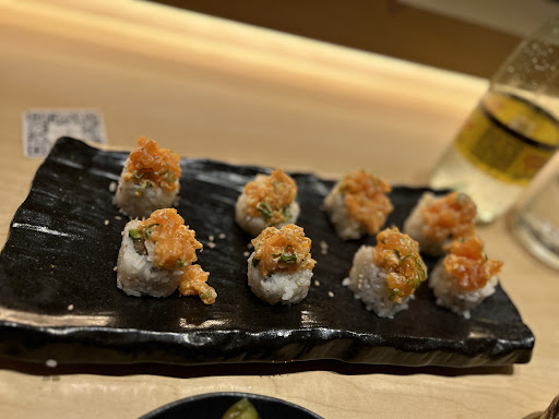 El servicio es PÉSIMO. Al llegar no hay nadie que te oriente sobre listas de espera o disponibilidad de mesas. El primero en atenderme fue un mesero que además de responder de forma grosera no me ayudó. La persona encargada de las mesas, no te dice tiempo de espera, no te voltea a ver, terrible trato, en fin, quería probar así que espere (poco realmente unos 15min). Qué pasó después? Pues que nadie tomaba la orden, sorprendente por las pocas mesas qué hay. Al llamar a un mesero, además de darme una mirada déspota me dijo literal con una seña que me esperara jaja y a los 15 minutos fueron a tomarnos la orden (para ello consultamos el menú porque ni me lo llevaron. Tomaron la orden de muy mala gana y los platillos se sirvieron en tiempo muy aceptable entre 20-30min. La realidad es que la comida a pesar de estar buena, por la terrible experiencia de servicio pues no me quise quedar al postre. Como cereza del pastel, nadie me tomó la orden después de múltiples intentos con los meseros mejor me fui a la caja a pagar. TERRIBLE SERVICIO, me atrevo a decir que es el peor que he tenido en un lugar de sushi.
