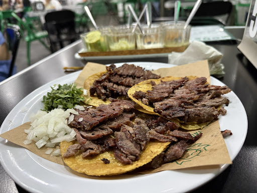 Tacos al pastor de arrachera Hechos con arrachera (falda/entraña). Las especias y el ligero dulzor de la piña están ahí, pero las fibras y la grasa de la carne de res le dan más relieve que la versión típica de cerdo. Añade cebolla y cilantro y exprime un poco de limón: equilibrio perfecto. Tacos de bistec Corte en su punto: ni seco ni desmigajado; buen sellado e intactos los jugos. Con su salsa roja semipicante se abren al instante los aromas. Si no toleras mucho el picante, empieza con la salsa verde. Salsas (vale la pena explorarlas):