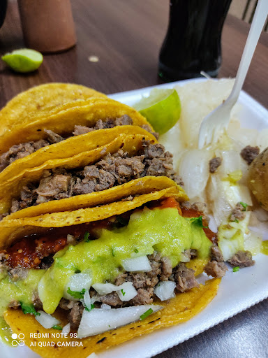 Read moreLos tacos a veces son muy resecos y siempre hay fila tanto para llevar y comer ahí. A muchos les cuesta reseñar la verdad si están ricos los tacos pero no los mejores de esa avenida y para ser una orden por $75 pesos que es un costo por encima del promedio de tacos de este tipo pues lo que no hace que valga el precio es que te andan pidiendo limosna algunas personas (les das y regresan más de una vez) a veces va un payaso con una bocina nada más a pedir dinero ni si quiera hace chistes o mini show (la primera vez ingenuamente le compré una orden por qué traía hambre y me quedé platicando con el) pero cada que voy ahí va y no se escucha la plática con los que vas.