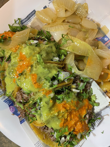 Que tacos tan más deliciosos. Haciendo referencia a un comentario que vi: la grasa aporta mucho sabor! Creo que ya sabemos a lo que nos atenemos con la comida fuera de casa, y no vamos a negar que le da un chingo de sabor, no será la mejor opción fitness pero 1 vez de vez en cuando :) ✔️ Pa empezar llegas y no hay mucha variedad en sí, sabes a lo que vas con tacos bañados (BISTECK) (hay varias opciones de postre 🫣 ✔️ Pagas primero (puedes pagar con tarjeta y SIN COMISIÓN) pidiendo los tacos que quieras, no hay necesidad de pedir "por orden". ✔️ Pasas al siguiente punto donde te entregan tus refrescos (venden aguas de Jamaica y limón cuando llegamos) ✔️ estacion 3, entrega al taquero tu papelito con tu orden y ahí mismo en directo te los entregan, con/sin cebolla y cilantro y unas papitas galeanas. ⭐️⭐️⭐️⭐️⭐️ Literal no tardas ni 5 minutos en que ya estés sentado, apartando tu lugar para pararte e ir por tu salsa fav 3 niveles Verde: pica suave Roja: (según mi novio estaba amarguis, le faltaba sazón y eran puros chiles) picor medio Naranja: Ya sabes a lo que vas... Deli deli la cebolla cocida y calentita 🫰🏻 Mi nuevo lugar fav de...