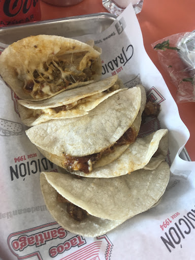 Read moreSi estás buscando unos taquitos de tradición para tachar de tu lista, Tacos Villa de Santiago es una opción a considerar. Aunque el sabor está bien, sin destacar demasiado, hay algunos detalles que podrían mejorar. Los tacos, aunque ricos, son pequeños en comparación con el precio. En cuanto a las salsas, tienen dos opciones, pero ninguna pica mucho, y la verde estaba bastante aguada cuando fui.