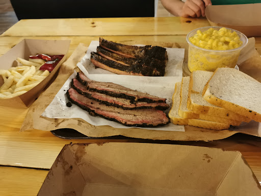 El concepto de este lugar son las costillas, el Brisket, los macarrones, puré, etcétera, el procedimiento para pedir es sencillo ordenar en caja y te llevan tu orden a la mesa, el servicio es muy rápido es como comer comida rápida.