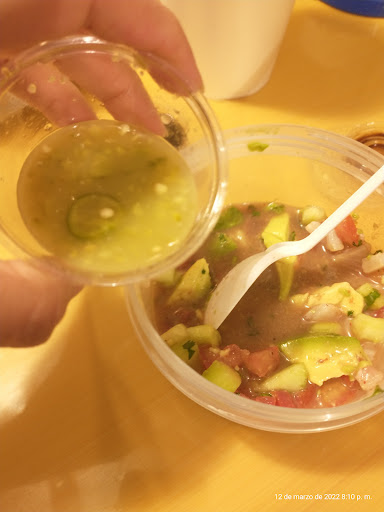 ESP Una muy buena opción para consumir en el local y para llevar. Los alimentos son preparados al momento. De los productos más consumidos son los ceviches de pescado o camarón. Está ubicado en la planta alta de la bifurcación de la vialidad, para ingresar podrás usar la escalera ubicada por uno de los lados. La atención es muy amable y cordial. Sus precios son adecuados...