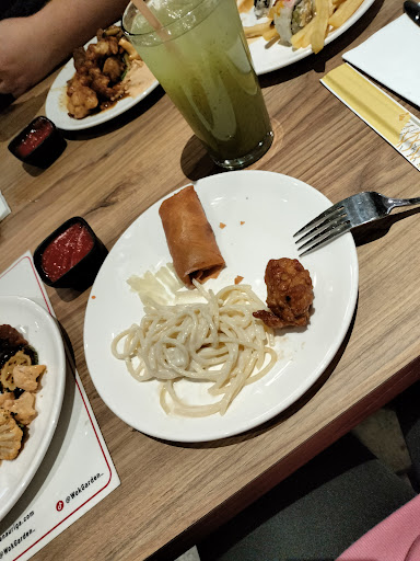 Read morePara empezar, en comparativa costo, calidad y variedad, para nada conveniente, por el "buffet" y bebidas de refil de 2 personas fueron poco más de $800. Verdaderamente.. me esperaba más, el servicio esta bien, sin embargo, la musica de "ambiente" que ponen es muy fuerte. Los meseros super rápidos y amables, eso si, pero las personas que están rellenando los alimentos, les preguntas algo y te dicen "no se", "no tenemos", "pregunté al que lo está atendiendo", etc.. La comida.. la peor experiencia que pude tener hasta el momento, la variedad de sushi es mínima, no cuentan con sushi que contenga res o pollo, solo mariscos y el "vegano" lo sacan de cocina cada vez que se acuerdan, así mismo a la hora de cocinar los productos crudos que tiene a la parrilla, solo le ponen sal y pimienta y ya, no tiene un área especial para cada producto crudo se mezclan todas las carnes y verduras (para que tengan cuidado personas con alergias), la pasta super recocida, el pollo agridulce más dulce que nada, me salió un pedazo de hueso y medio cocido, el rollo primavera super grasoso y la carne, que no se pusieron de acuerdo si era res, cerdo o mezcla de ambos, ligeramente rosita y de sabor no muy agradable, la barra de postres me tocó una variedad de 3 tipos de "pasteles" que saben a pan de caja y solo le agregan colorante que se desmoronaba al comer, el flan no se con que lo hicieron pero la textura es desagradable y la variedad de nieves son 4 sabores diferentes, chocolate, fresa, limón y mango con chamoy y pareciera que estuvieron refrigerados mucho tiempo, las papas a la francesa mal cocidas, frías y sin siquiera un poco de sal.. Y ya mejor hasta aquí lo dejo, en pocas palabras, nada...