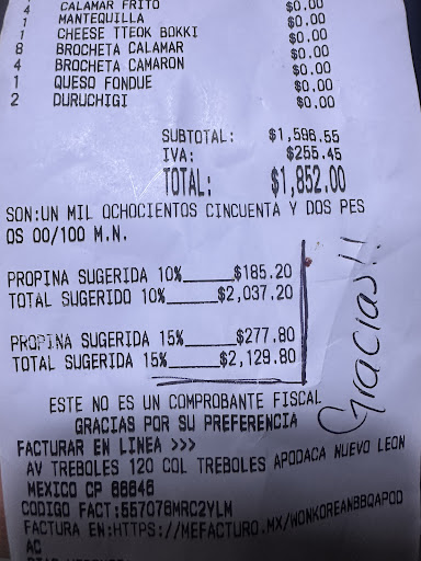Read moreExcelente lugar para degustar Korean BBQ. El restaurante es de tipo buffet, y cuenta con dos tipos de menú, el clásico (con alrededor de 50 elementos para elegir) y el premium (que cuenta con alrededor de 100), ambos tienen la restricción de comer solo durante 3 horas, lo cual me parece bastante justo para alcanzar a probar distintos platillos. Algunas de las bebidas cuentan con refill y el buffet también incluye postre, sin embargo, no tienen servicio para llevar. Mi experiencia fue bastante buena, diría yo excelente, ya que llegué de último momento (soy de a Guadalajara), para ser exactos 7 minutos antes de que cerraran cocina pero aún asi me atendieron. Como era mi primera vez y no sabía muy bien qué elegir, la mesera que me atendió fue quien ordenó por mi, eligiendo los alimentos más comunes y más pedidos. Me trajo de todo, desde carnes como cerdo, costillas, pollo, res, verduras, todo esto para asar, al igual que algunos acompañamientos como sushi, ramen, arroz frito, distintos tipos de alitas y boneless, kimchi fries, etc... Por el tiempo limitado no pude terminar con todo, ya que además era demasiado para una sola persona, pero aún así pude probar de todo un poco. De igual manera la mesera me preparó el asador y me hizo recomendaciones, como el hecho de que las rejillas del asador es donde se ponen los cortes más gruesos para que se cocinen bien y además para que agarren un toque más ahumado, mientras que dónde no hay rejillas es para los cortes mas delgados. El servicio estuvo excelente y todo lo que me recomendó la mesera estuvo bastante bueno,...