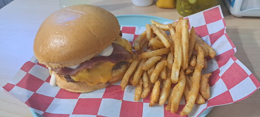 Mi primera experiencia fue muy agradable, fuimos con mi bebe y pensamos que tardarían un montón, no fue el caso incluso pedí que me adelantarán papás de mi orden (para mi niña) y sin ningún problema y con toda la disposición lo hicieron, el lugar el pequeño pero no te abruma porque es un espacio limpio y despejado de cosas innecesarias, solo esta el que atiende el mostrador, que igualmente es el que te entrega el menú toma, tu orden, entrega y cobra. A pesar de haber 2 mesas adelante, no fue mucha la espera y la comida deliciosa me gustó muchísimo y te llevan pepinillos y chiles en escabeche a la mesa, compré un aderezo blue cheese ($10) y si que era un aderezo riquísimo con trocitos de queso😍 lo ame, los palitos de queso Super! Con salsa de tomate italiano fresco las papas preparadas estaban muy bien echas para nada aguadas como se esperaría por estar bañadas y la malteada muy rica... Pero descubrí que no me gusta cereal en mi malteada jeje y si no están interesados en una gaseosa las aguas están muy ricas yo pedí una de Jamaica 👍 en general fue una muuuy buena experiencia!! Lugar limpio, exelente atención, servicio rápido y la comida uff👍👍 hace rato que no disfrutaba de algo bueno de...